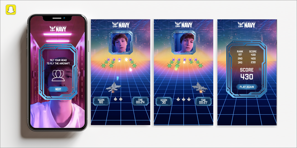 Our Navy team has partnered with Snap Chat to generate these 2 stunning and wildly engaging lenses. ‘Launch It’ uses hand gesture recognition to put the user in the shoes of the fight deck crew to launch a jet. ‘Cyber Invaders’ turns you into a Cyber Warfare Engineer who’s fighting off a cyber attack.
